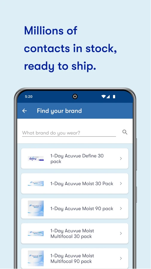 • Prescription Management: Easily enter or upload your contact lens prescription details securely into the app, which then helps tailor the product recommendations and order process. By streamlining the prescription input, this feature simplifies the initial step of ordering corrective lenses online, ensuring that the recommended products match the user’s unique visual correction needs accurately.