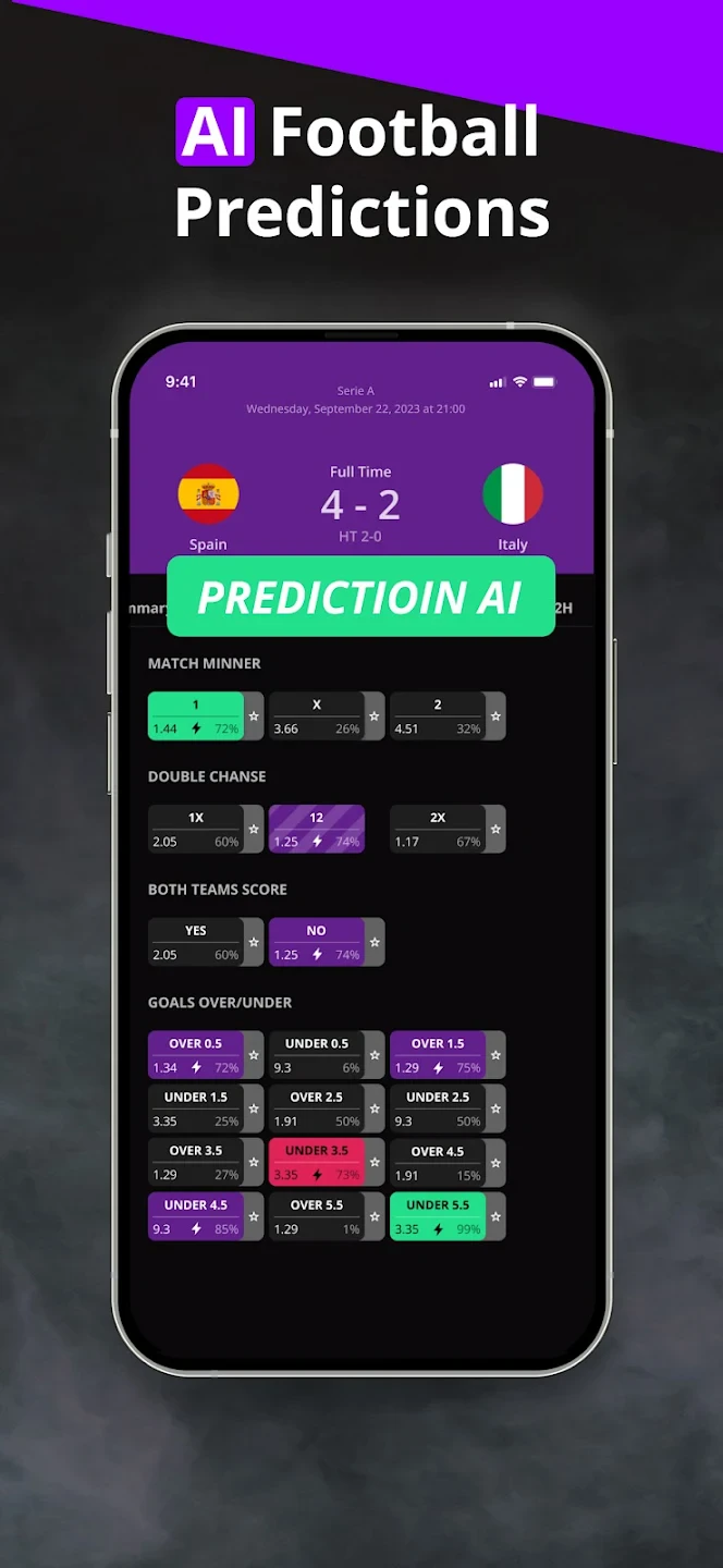 • Expert Prediction Engine & Statistical Models: Leverage the app’s unique algorithm and curated expert insights to generate predictions for match outcomes and specific event probabilities. It helps filter through complex data to suggest outcomes based on rigorous analysis.