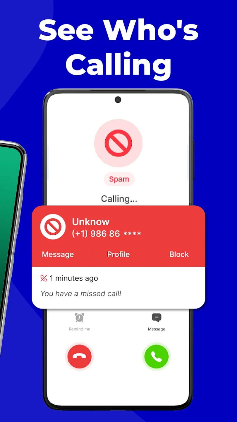 • Detailed Call Information Display: Instantly see the caller’s name and number (if available via cellular provider or contacts), along with a clear indicator whether the call is marked as ‘Spam’, ‘Scam’, or potentially ‘Legitimate’. This immediate feedback helps users decide whether to answer or let the call go to voicemail without hesitation.