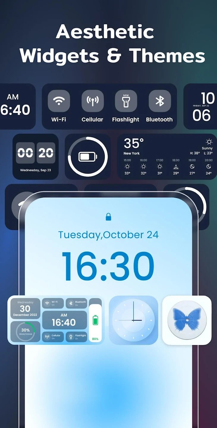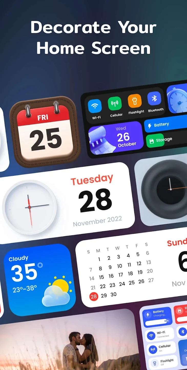 • Widget Integration & Selection: Access and organize your preferred widgets within Color Widgets quickly. From weather apps to calendars to utility widgets like the clock, you can curate an interface that’s both functional and visually dynamic.