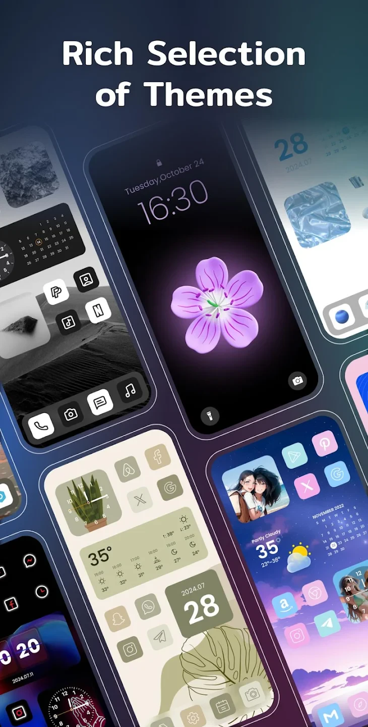 • Theme Consistency Guarantee: Every element, from the background pattern to notification dots, synchronizes with your customizable color cycle. In a world saturated with uniform designs, this unique feature creates truly personalized spaces quickly.