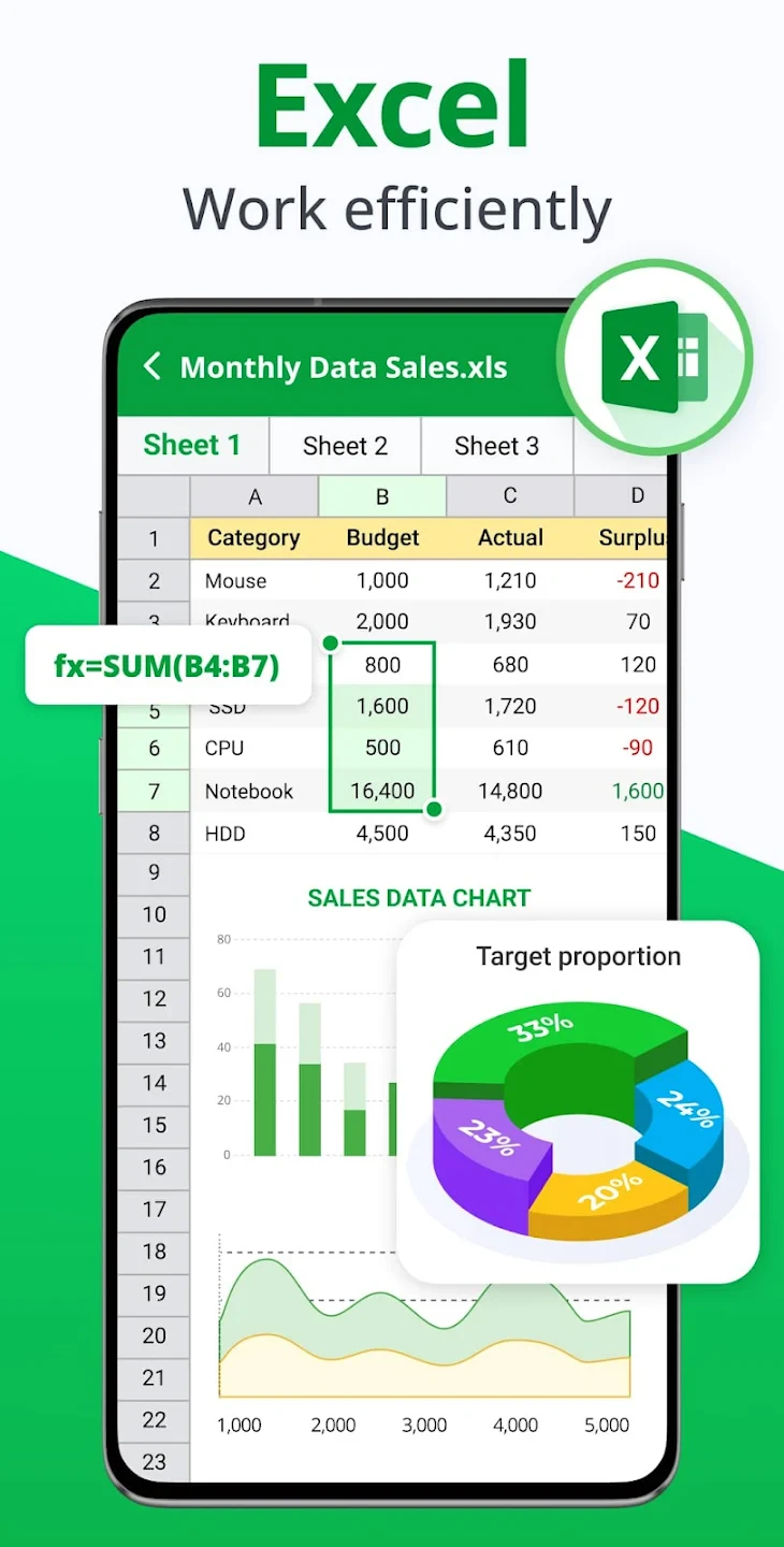 - View Multiple Document Formats: Instantly read and navigate through text, tables, charts, and slides from common office file types like DOCX, XLSX, and PPTX, eliminating the need for heavy software installations or complex conversions. This feature empowers users to handle work and personal files efficiently from their mobile devices.