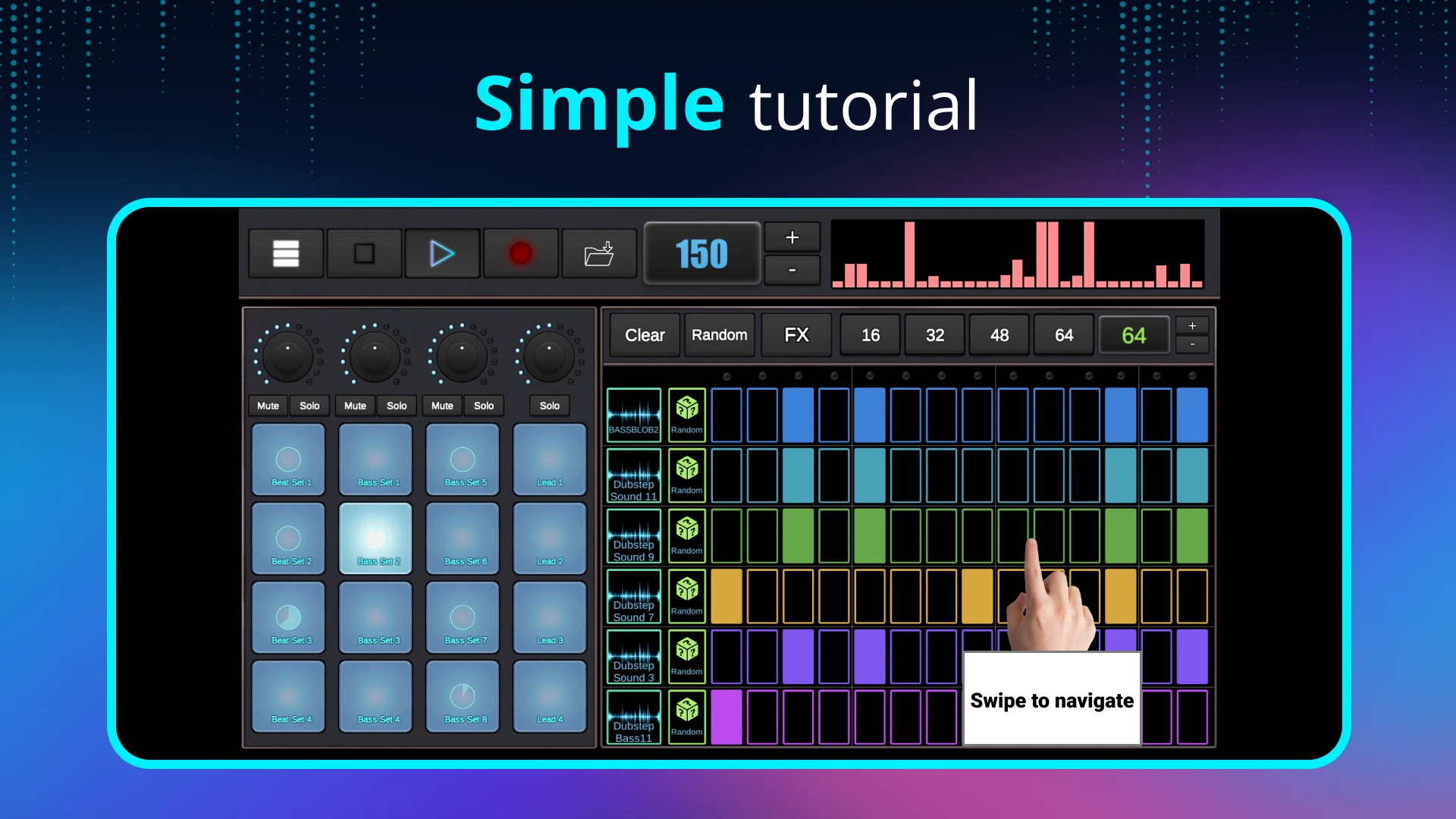 - Adjustable Tempo & Grid Size: Fine-tune the track’s tempo from slow Dubstep drones to faster rhythms, and control the precision of step placement with variable grid sizes. This flexibility matters for all users because Dubstep spans various subgenres; adjusting these parameters allows for authentic recreation or experimentation without constantly switching apps, catering to both purists and innovators.