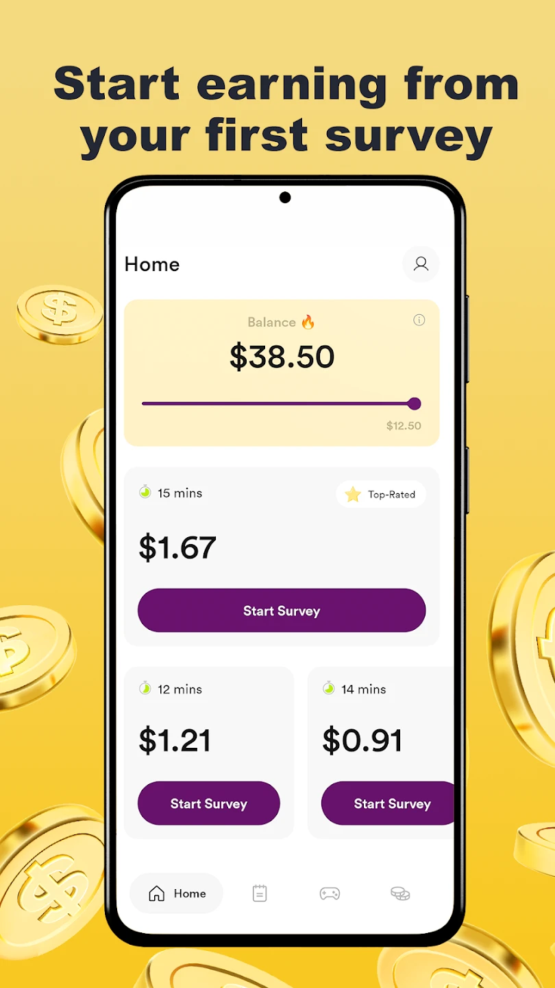 - Earning Rewards and Payment Processing: Users accumulate points, which can be exchanged for cash or gift cards, and the app handles the payout process once the user meets specified threshold criteria. This system is valuable because it offers tangible benefits for completing tasks, provides clear transparency on earning rates, and highlights the direct connection between effort (completing Golden Surveys – Make Money tasks) and financial gain.