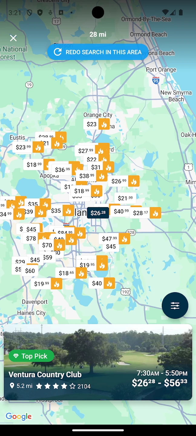 • Course Data & Realistic Map Views: Benefit from accurate course information including yardages, slope ratings, and detailed, realistic map previews simulating the hole locations and layout on each course. This aids in selecting the right tee boxes and assessing course management challenges before heading out, improving the planning phase of the golf experience.