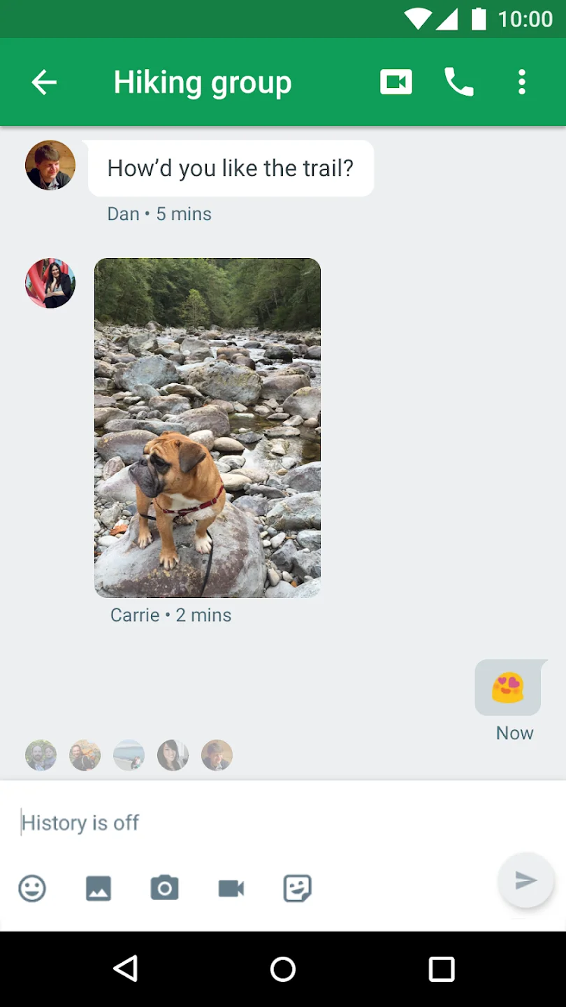 • Integrated Video Calling (Hangouts Meet): Easily connect video calls directly within your conversations or dial into Google Meet meetings. The purpose is to offer a convenient, built-in solution for visual communication without needing separate app downloads or complex setups. This simplifies scheduling and joining calls, especially useful for quick ad-hoc discussions or connecting with remote participants.