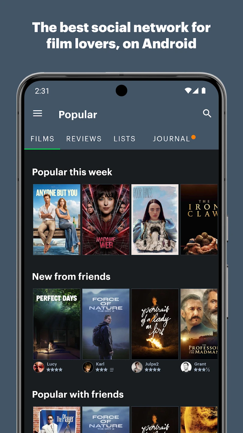 - Activity Stream & Following System: See updates from followed users, including ratings, reviews, and list additions. This keeps users connected to their favorite critics, peers, or influencers in real-time, creating a personalized feed of cinematic activity.