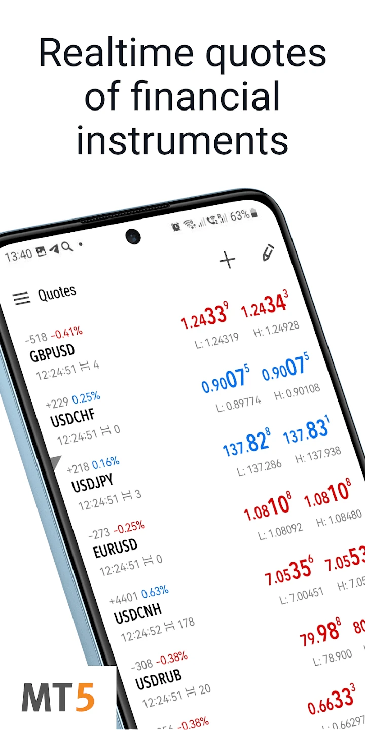 The MetaTrader 5 — Forex, Stocks application is a sophisticated trading platform designed for financial markets, primarily focusing on Forex and Stocks trading. As a powerful tool developed by MetaQuotes Software Corp., it offers advanced charting capabilities, automated trading features (like Expert Advisors), and a wide range of technical indicators for analyzing market trends and executing trades effectively across multiple asset classes. It targets retail and institutional traders seeking a comprehensive environment for technical analysis, order management, and automated trading strategies.