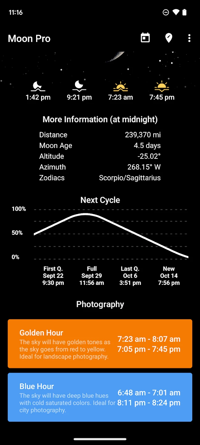 The practical value of My Moon Phase Pro lies in its accuracy and ease of use, bringing complex astronomical data into everyday life. It helps photographers plan perfect nightscape shots, astronomers find optimal observing times, and users simply appreciate the natural world’s rhythms with greater understanding. This app empowers users to connect with lunar phenomena anytime, anywhere.
