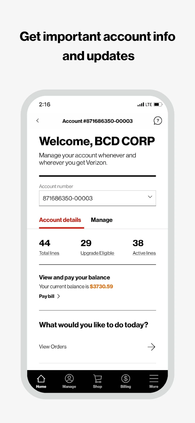 My Verizon For Business is a dedicated mobile application and web portal designed to empower corporate IT administrators and business decision-makers to efficiently manage Verizon communications services, including phones and data plans, assigned to employees or departments. It provides centralized control and oversight for billing, SIM card provisioning, device configurations, and users specifically for business needs under the My Verizon For Business umbrella, offering significant advantages for larger organizations.