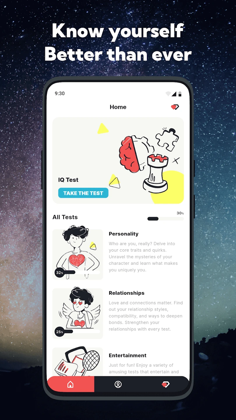 - Standardized Test Library: The app offers a curated collection of evidence-based assessments covering personality traits, emotional intelligence, stress levels, and career compatibility, providing reliable and relevant results tailored to different needs.