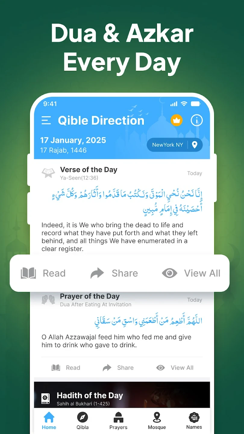 A: Absolutely. The Qibla Compass works best when you can access the sky, but using its map view or a marked point indoors or at night still helps you face the correct direction accurately and reliably.