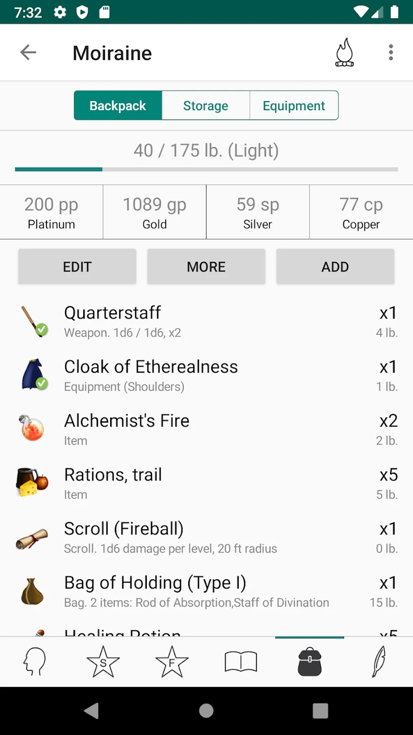 Designed primarily for Dungeons & Dragons 5th edition with some Pathfinder elements. Includes collaborative character creation and detailed spell components lookup. Works best for D&D users but has limited support for 3.5e elements. |
