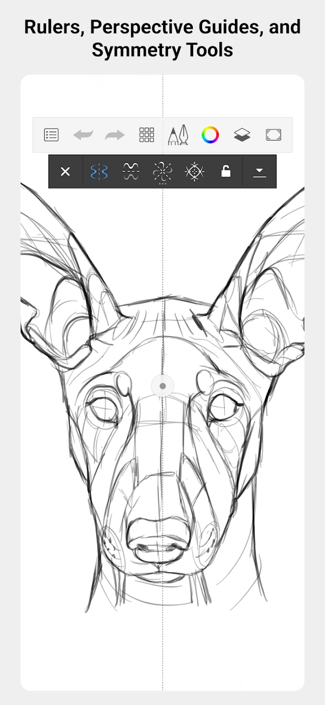 • Canvas Scaling & Guides: Users can easily scale their canvas to fit their creative vision, even starting small and expanding later. Built-in grid patterns, perspective guides, and rulers assist in aligning elements for precision drawing, especially valuable for technical sketches or architectural concepts.