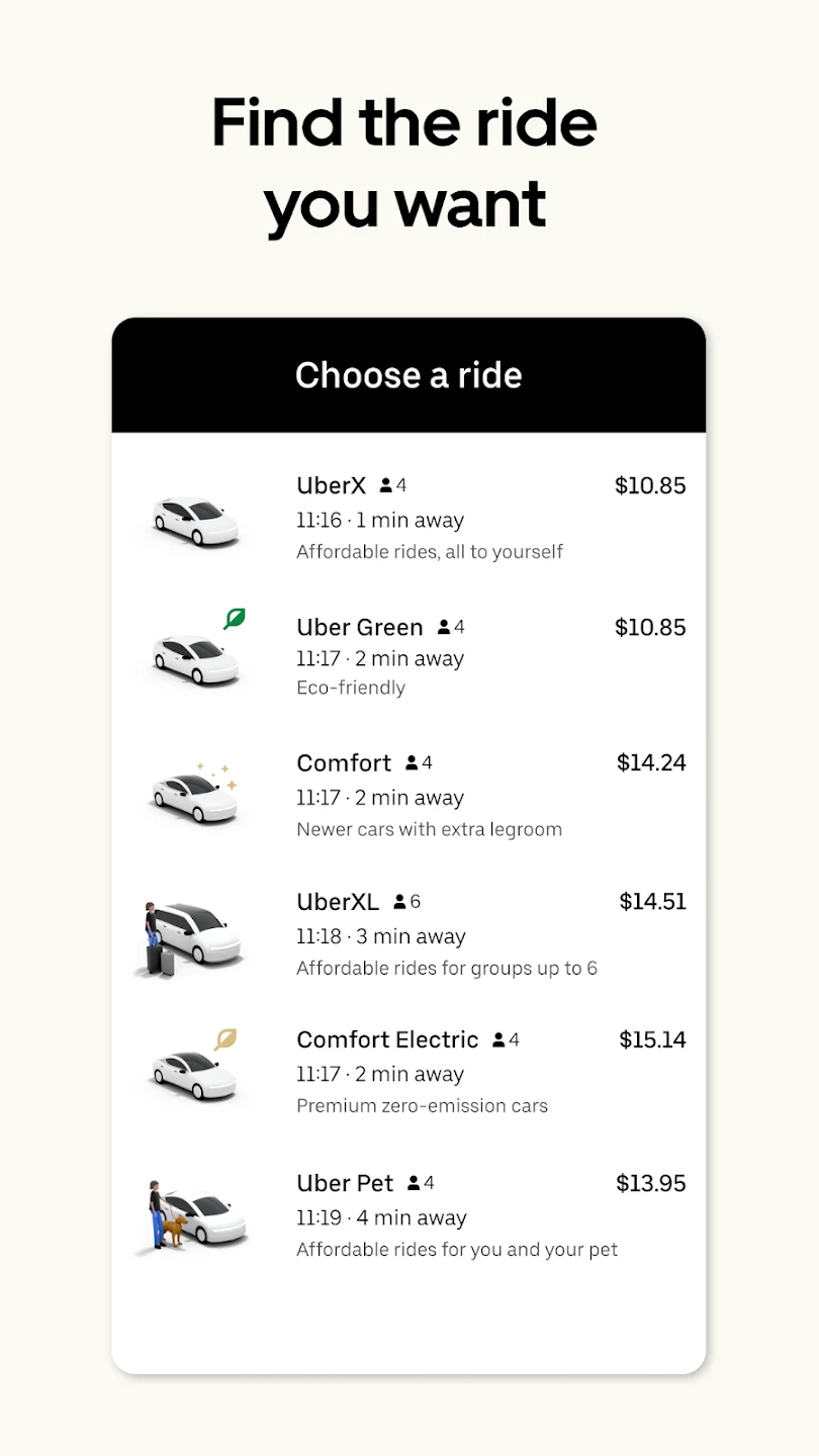The Uber – Request a ride mobile application is a ride-hailing service designed for requesting, tracking, and potentially paying for short-distance trips using a smartphone. It connects users directly with nearby drivers, offering a convenient alternative to traditional taxis. This service is primarily targeted towards individuals seeking a quick, affordable, and transparent way to travel within urban and suburban areas.