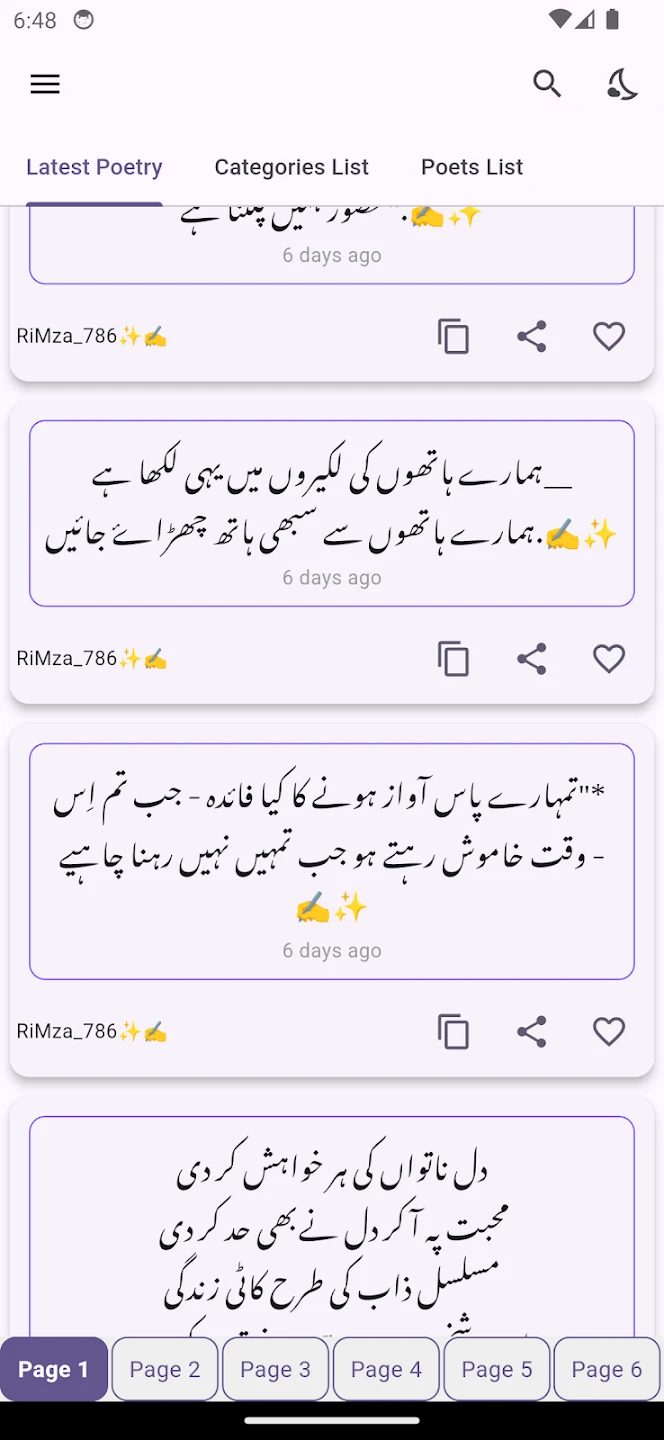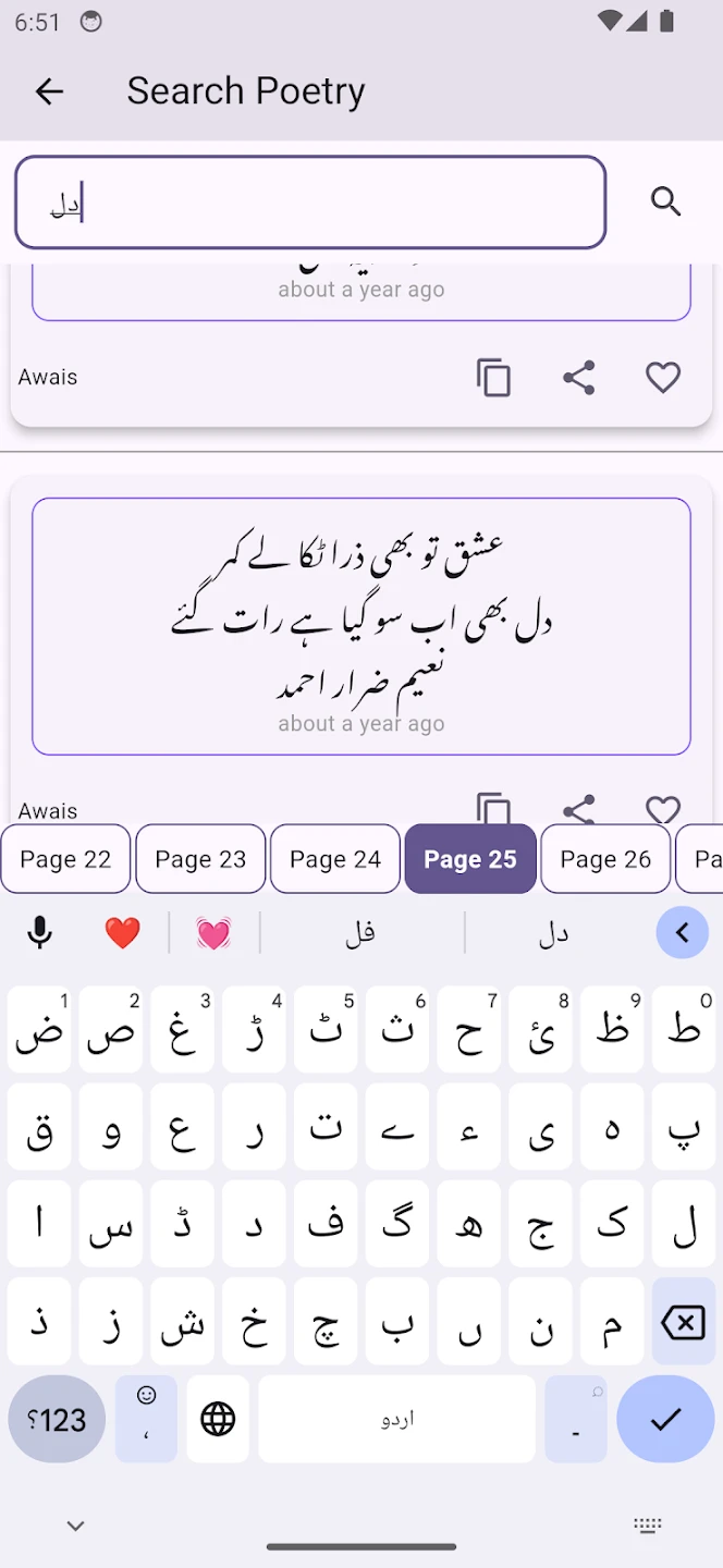- Comprehensive Verse Library: Browse thousands of classic and contemporary Urdu poems from renowned poets like Hafeez Jalandhry, Faiz Ahmed Faiz, and Allama Iqbal, each with detailed annotations explaining historical context and literary devices. This allows users to trace poetic evolution across different eras, making complex cultural shifts in Urdu literature accessible through visual timelines and comparative analyses.